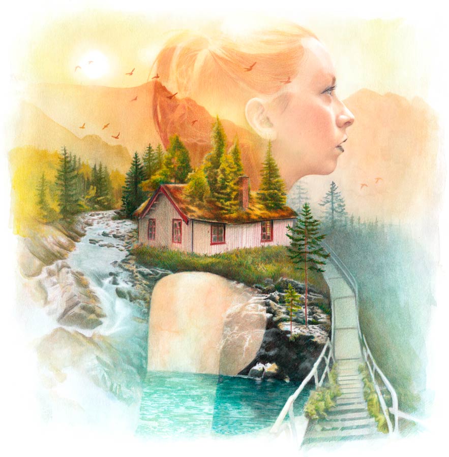 She deals with illustration from an experimental perspective, creating her works scrupulously by hand combining different techniques and materials such as watercolor, colored pencils, indian ink, graphite, coffee and tattoo ink among others. She complements this process with digital tools once the illustration is finished and scanned. She is passionate about experimenting, mixing and discovering new combinations.